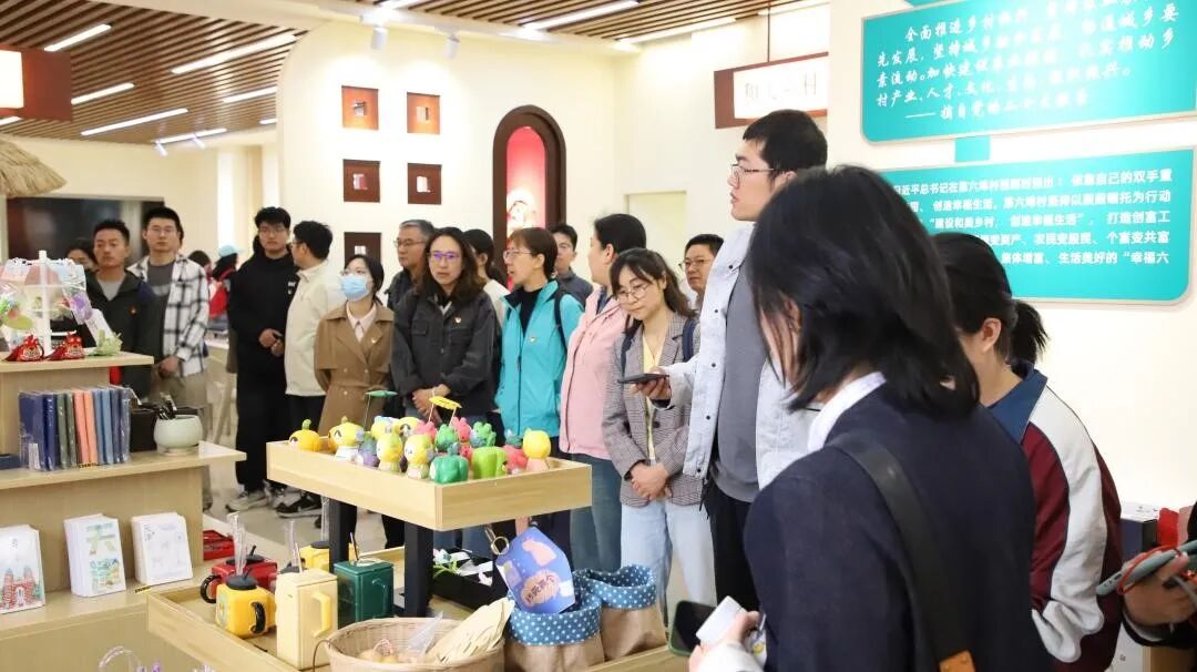 首站,师生党员们来到了创富工坊,这里汇聚了当地特色农产品与手工艺品,生动展现了第六埠村在乡村振兴道路上的创新实践。党员师生们在参观中了解到,村民们通过发展特色产业,实现了增收致富,走出了一条具有地方特色的乡村振兴之路。